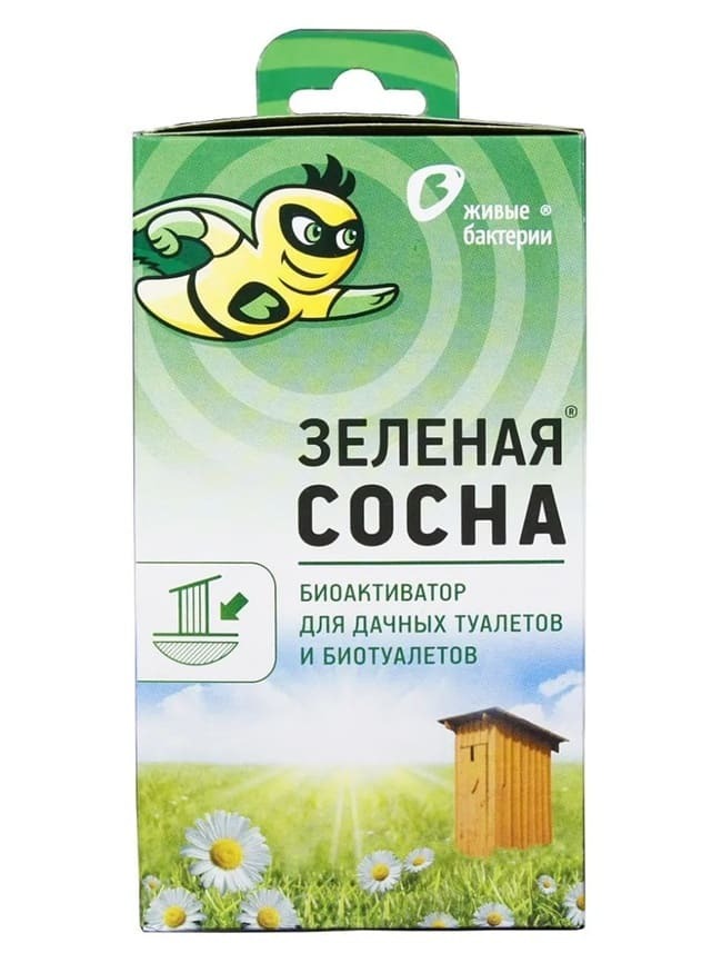 Каждая гранула биоактиватора Зеленая сосна является, по сути, колонией бактерий, выведенных специально для устранения неприятного запаха выгребных ям, а также уличных и биотуалетов без системы водяного слива. Методом сублимации бактерии погружаются в анабиоз и до непосредственного контакта с жидкостью неактивны. Содержимое туалетов является отличной средой для размножения бактерий препарата, которые после попадания в жидкость начинают активно расщеплять твердые отходы на органические составляющие, необходимые им для жизнедеятельности. Прежде всего, действие биоактиватора Зеленая сосна отражается на газообразовании – неприятный запах сменяется легким хвойным ароматом.