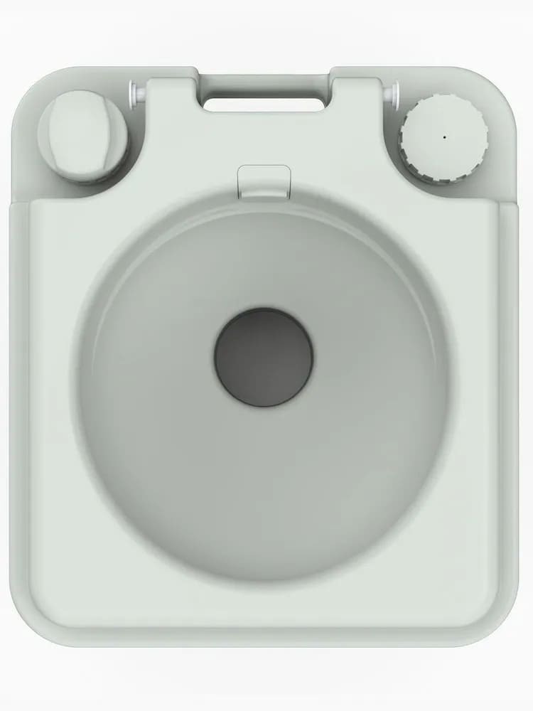 Биотуалет состоит из двух соединенных между собой отделений. В верхнее отделение (объем 15л) заливается обычная вода, которая необходима для смыва отходов. Отделение оборудовано помпой для смыва, сидением и крышкой.